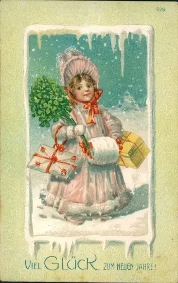 Präge Ak Glückwunsch Neujahr, Mädchen, Geschenke, Glücksklee