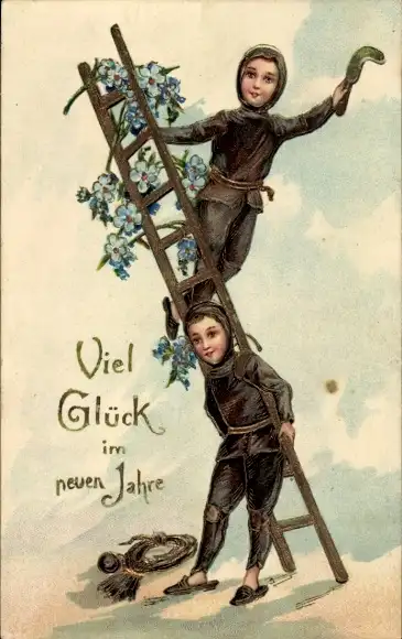 Präge Ak Glückwunsch Neujahr, Schornsteinfeger