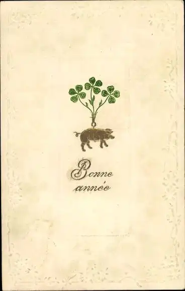 Präge Ak Glückwunsch Neujahr, Schwein, Glücksklee