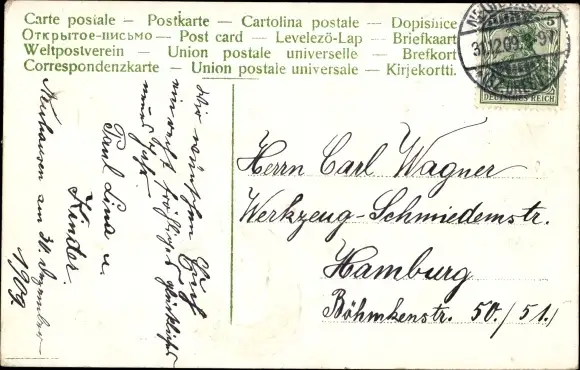 Zustand, siehe Scan, gelaufen, 1909 - ca 9 cm X 14 cm