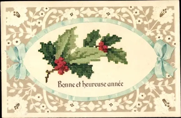 Präge Ak Glückwunsch Neujahr, Stechpalme, Schleife