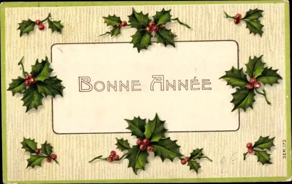 Präge Ak Glückwunsch Neujahr, Stechpalmenblätter