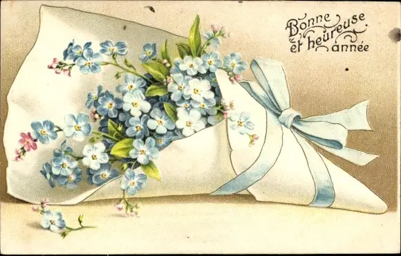 Präge Ak Glückwunsch Neujahr, Vergissmeinnicht, Blumenstrauß