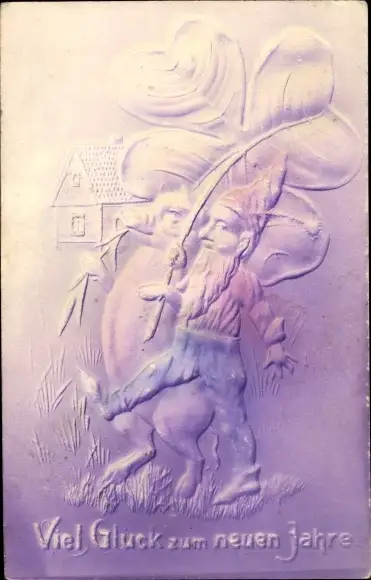Präge Ak Glückwunsch Neujahr, Zwerg, Schwein, Glücksklee