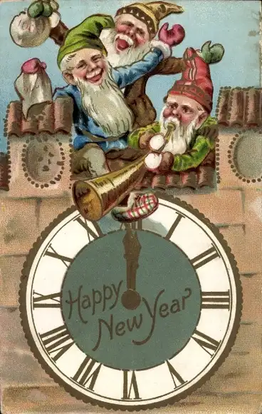 Präge Ak Glückwunsch Neujahr, Zwerge, Uhr