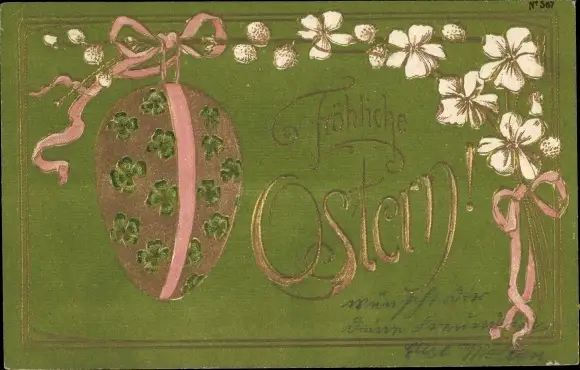 Präge Ak Glückwunsch Ostern, Blumen, Osterei, Glücksklee