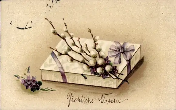 Präge Ak Glückwunsch Ostern, Geschenk, Weidenkätzchen