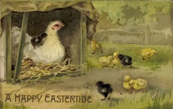 Präge Ak Glückwunsch Ostern, Küken, Henne, Nest