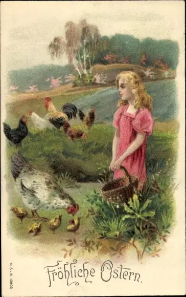 Präge Ak Glückwunsch Ostern, Mädchen, Hühner, Küken