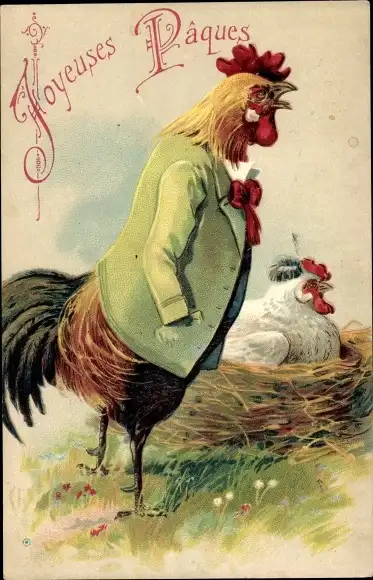 Präge Ak Glückwunsch Ostern, Vermenschlichte Hühner