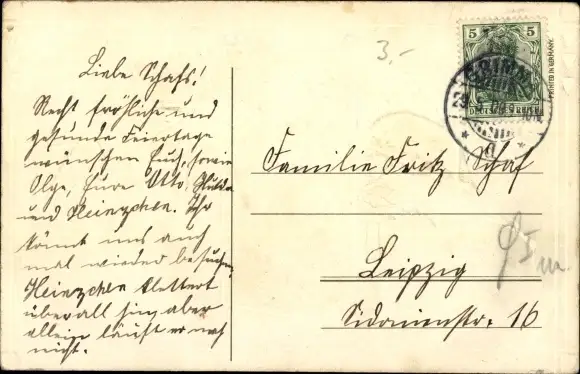 Zustand, siehe Scan, gelaufen, 1909 - ca 14 cm X 9 cm