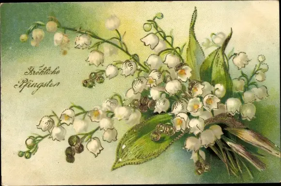 Präge Ak Glückwunsch Pfingsten, Maiglöckchen