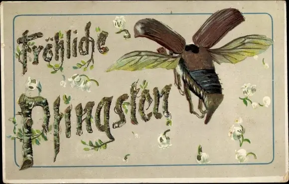 Präge Ak Glückwunsch Pfingsten, Maikäfer