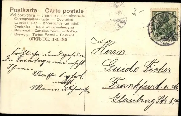 Zustand, siehe Scan, gelaufen, 1906 - ca 14 cm X 9 cm