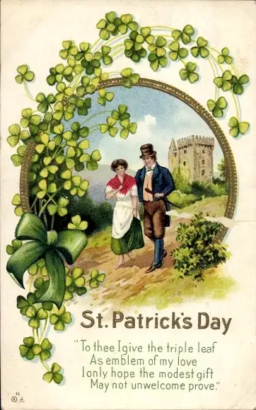 Präge Ak Glückwunsch St. Patrick, Liebespaar, Glücksklee