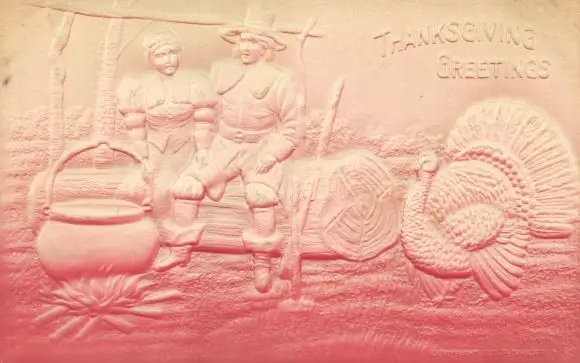 Präge Ak Glückwunsch Thanksgiving, Bauern, Bauernmädchen, Truthahn, Kessel