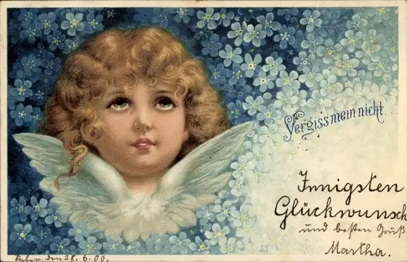 Präge Ak Glückwunsch , Vergiss mein nicht, Engel