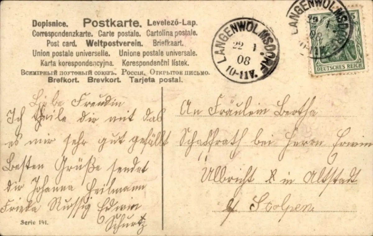 Zustand, siehe Scan, gelaufen, 1908 - ca 14 cm X 9 cm