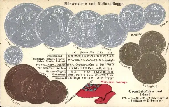 Präge Ak Großbritannien, Irland, Münzen, Nationalflagge
