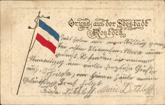 Präge Ak Hansestadt Rostock, Fahne, Seestadt