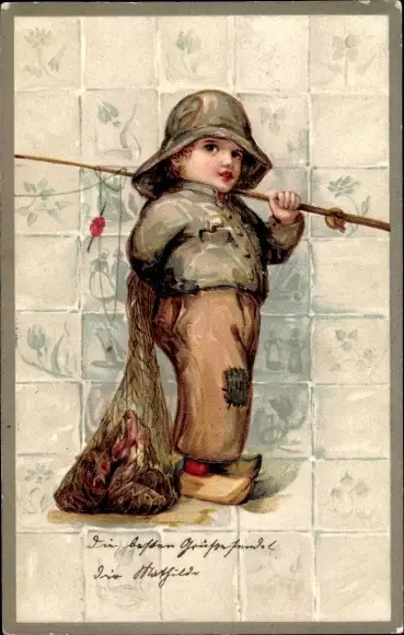 Präge Ak Junge in Niederländischer Tracht als Fischer, Fliesen