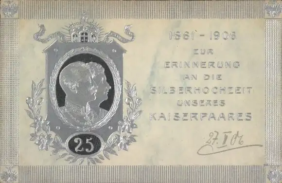 Präge Ak Kaiser Wilhelm II., Kaiserin Auguste Viktoria, Silberhochzeit 1906
