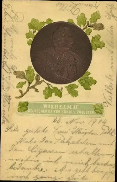 Präge Ak Kaiser Wilhelm II., Porträt, Eichenlaub