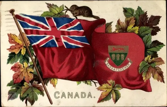 Präge Ak Kanada, Britische Fahne, Laubblätter