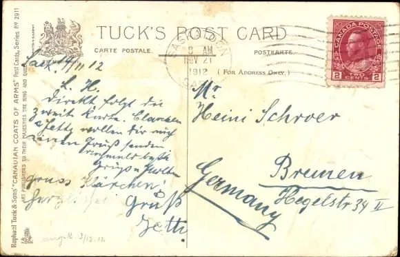 Zustand, siehe Scan, gelaufen, 1912- Tuck 2911 - ca 14 cm X 9 cm