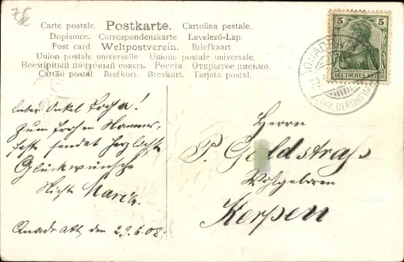 Zustand, siehe Scan, gelaufen, 1908 - ca 9 cm X 14 cm