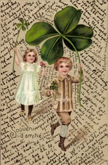 Präge Ak Kinder mit Klee