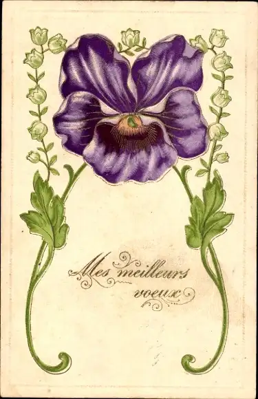 Präge Ak Kitsch, Blumen, Stiefmütterchen, Maiglöckchen