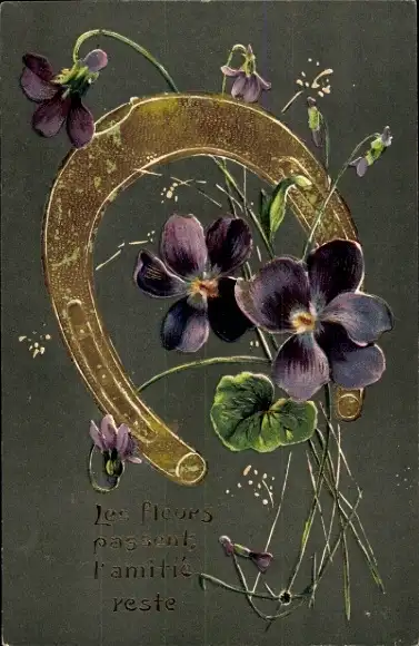 Präge Ak Kitsch, Hufeisen, Veilchen