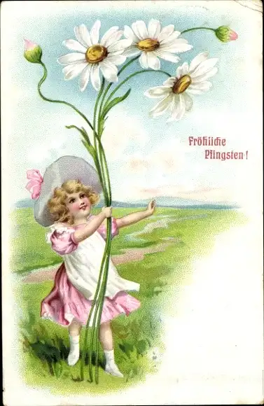 Präge Ak Kleines Mädchen mit Margeriten, Feldblumen, Kitsch