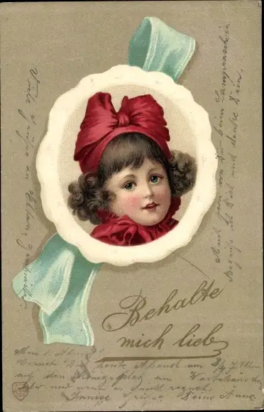 Präge Ak Mädchen-Portrait, Behalte mich lieb, Kitsch