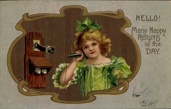 Präge Ak Mädchen beim Telefonieren, Porträt, Telefon