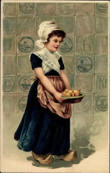 Präge Ak Mädchen in niederländischer Tracht, Birnenkorb
