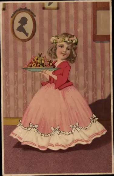 Präge Ak Mädchen in pinkem Kleid, Geschenk, Portrait