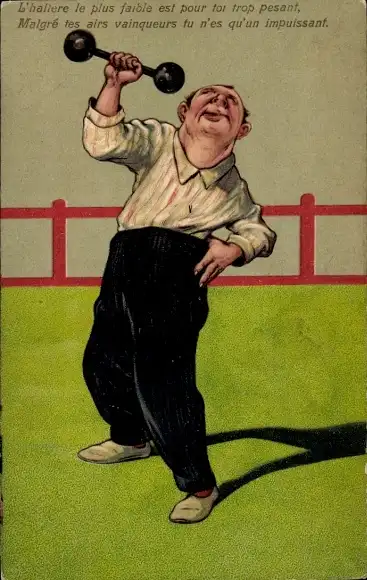 Präge Ak Mann als Gewichtheber mit Hantel