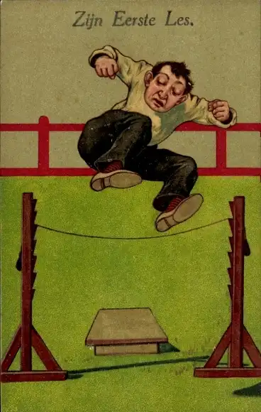 Präge Ak Mann beim Hochsprung, erster Versuch