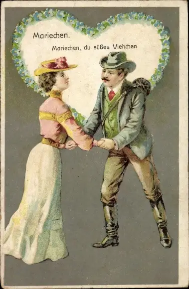 Präge Ak Mariechen, du süßes Viehchen, Liebespaar