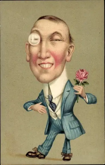 Präge Ak Nobler Mann, Betrunkener, Rote Wangen, Rose, Monokel