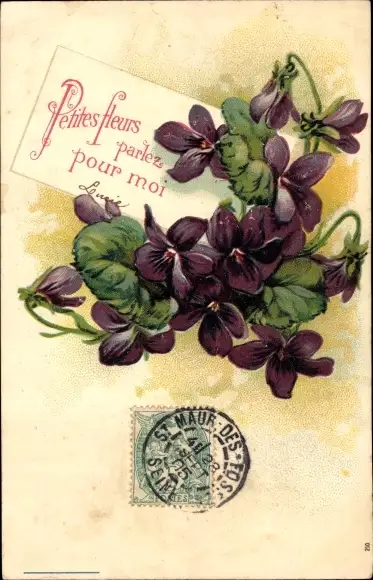 Präge Ak Petites fleurs parlez pour moi, Veilchen, Kitsch