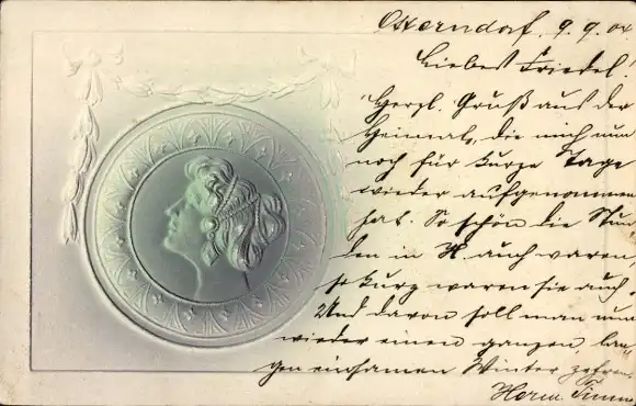 Präge Ak Porträt einer Frau, Kopfschmuck, Schleifen