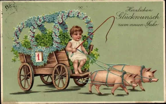 Präge Ak Prosit Neujahr, Schweine, Kalender, Kitsch