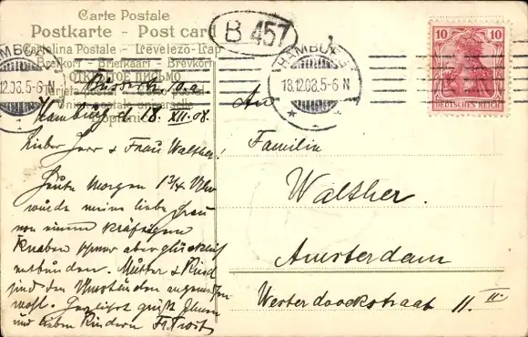 Zustand, siehe Scan, gelaufen, 1908 - ca 9 cm X 14 cm