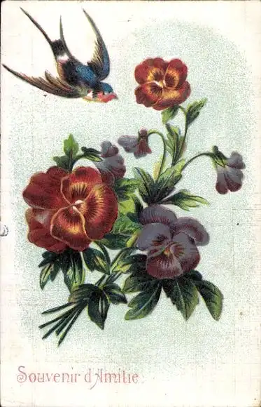 Präge Ak Schwalbe, Stiefmütterchen, Vogel, Souvenir