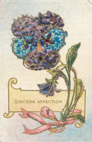 Präge Ak Sincere Affection, Veilchen, Stiefmütterchen, Schleife