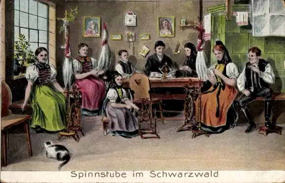 Präge Ak Spinnstube im Schwarzwald, Schwarzwälder, Spinnräder