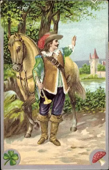 Präge Ak Trompeter von Säckingen, Pferd, Glücksklee, Pilz
